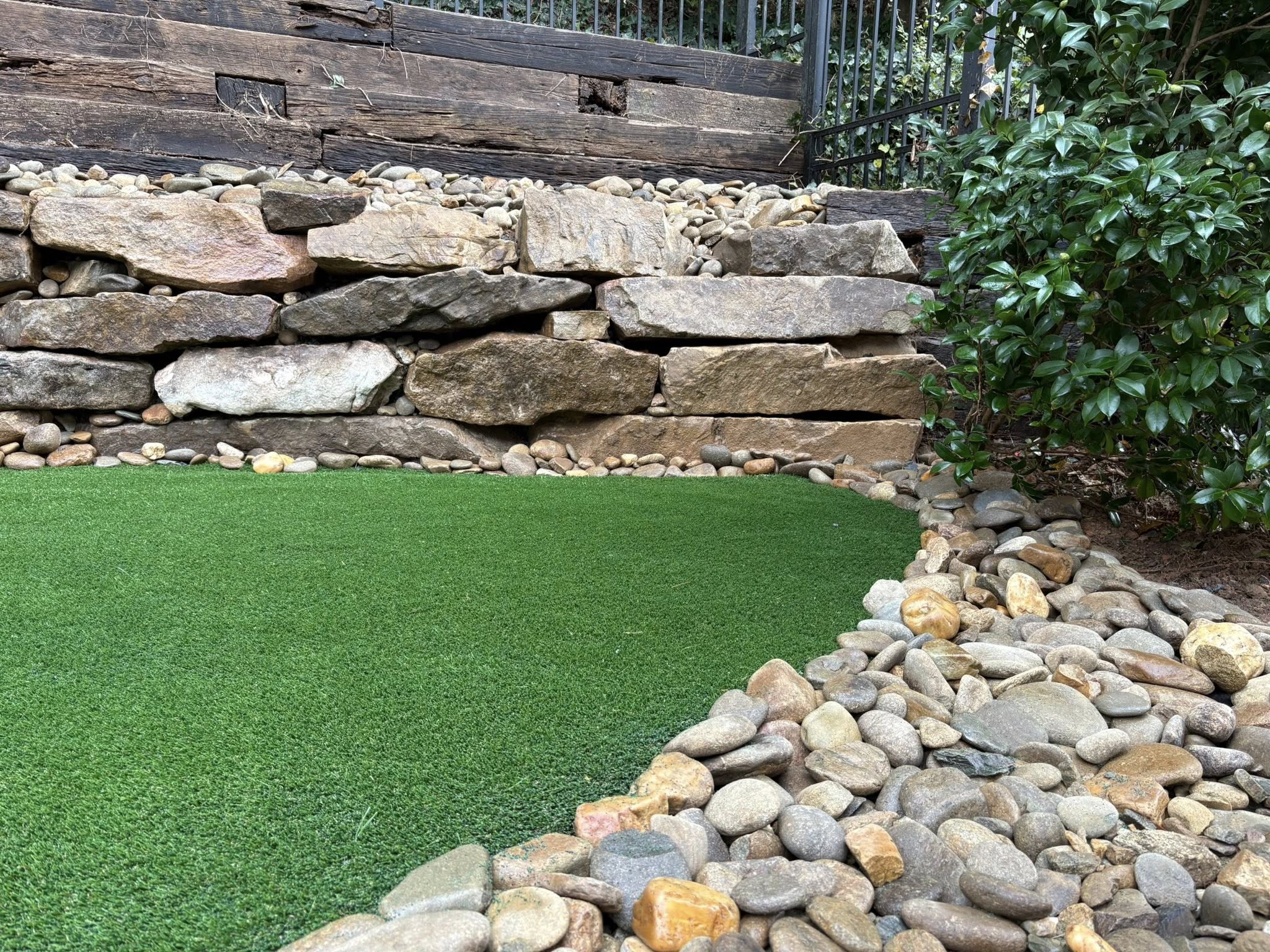In the established and wonderful neighborhood of Thornhill in Charlotte, creating a backyard that balances structural integrity with natural beauty is an art form. This mostly finger Boulder Wall serves as the rugged, organic backbone of a transformative landscape design that has redefined the outdoor experience for this home. Unlike uniform, manufactured retaining blocks, a wall constructed primarily of finger boulders—elongated, natural stones—offers a unique, artisanal aesthetic. Each stone is distinct, fitting together to create a structure that looks less like a barrier and more like a purposeful extension of the earth itself, grounding the design in timeless, rustic elegance.