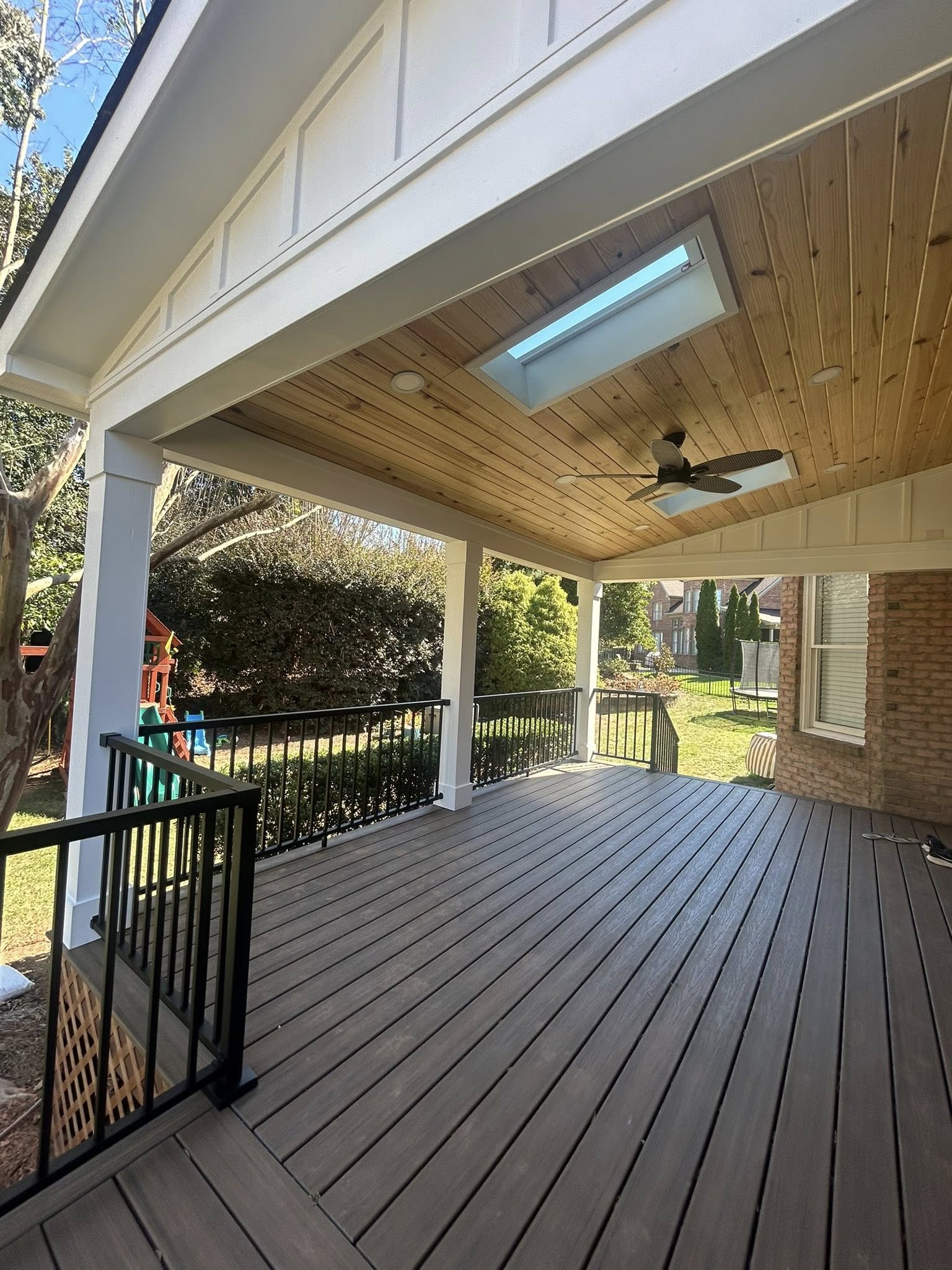 The allure of the outdoors is irresistible, especially when you have a dedicated, sheltered space to enjoy it. Having a Covered Porch complete with composite decking and maintenance free handrails makes for a wonderful outside experience, creating a seamless extension of the indoor living area that defies the elements. Whether it’s shielding you from the intense midday sun of a Matthews summer or keeping you dry during a gentle spring shower, a covered porch ensures that your time outside is always comfortable. This recent exterior remodeling project built in Matthews, NC, stands as a prime example of how modern materials and professional craftsmanship come together to elevate a home’s functionality and aesthetic appeal.