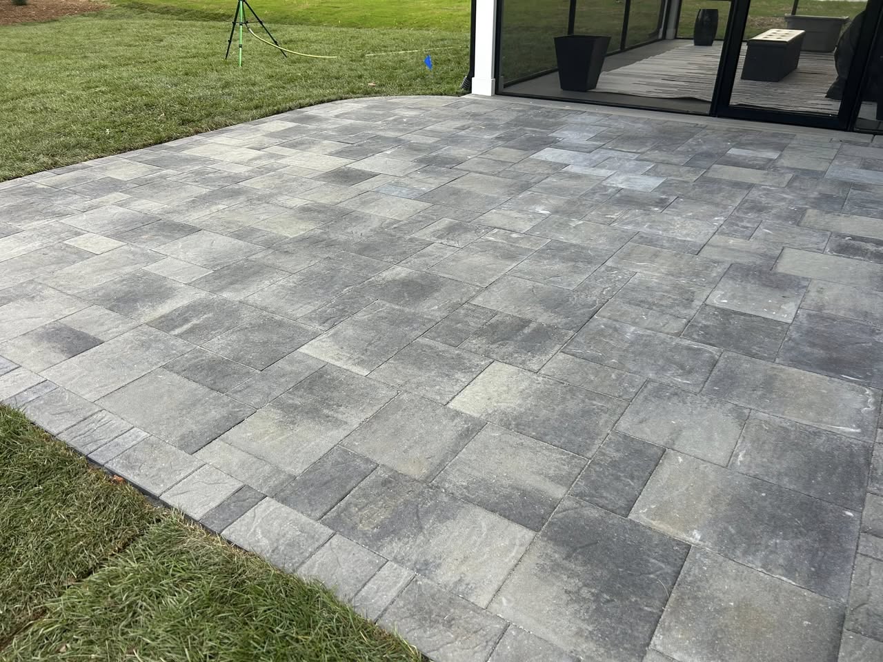 A complete backyard transformation in Matthews, NC, has come to life, demonstrating a perfect harmony between foundational hardscape, lush greenscape, and vibrant softscape. This comprehensive project involved the installation of a new Fescue grass sod lawn, robust landscaping with plenty of plants, and a magnificent Paver Patio built with Belgard Origins 12, all in the sophisticated color of Newport. This combination of elements has turned a standard yard into a multi-functional and beautiful outdoor living space, just in time for the prime autumn season.