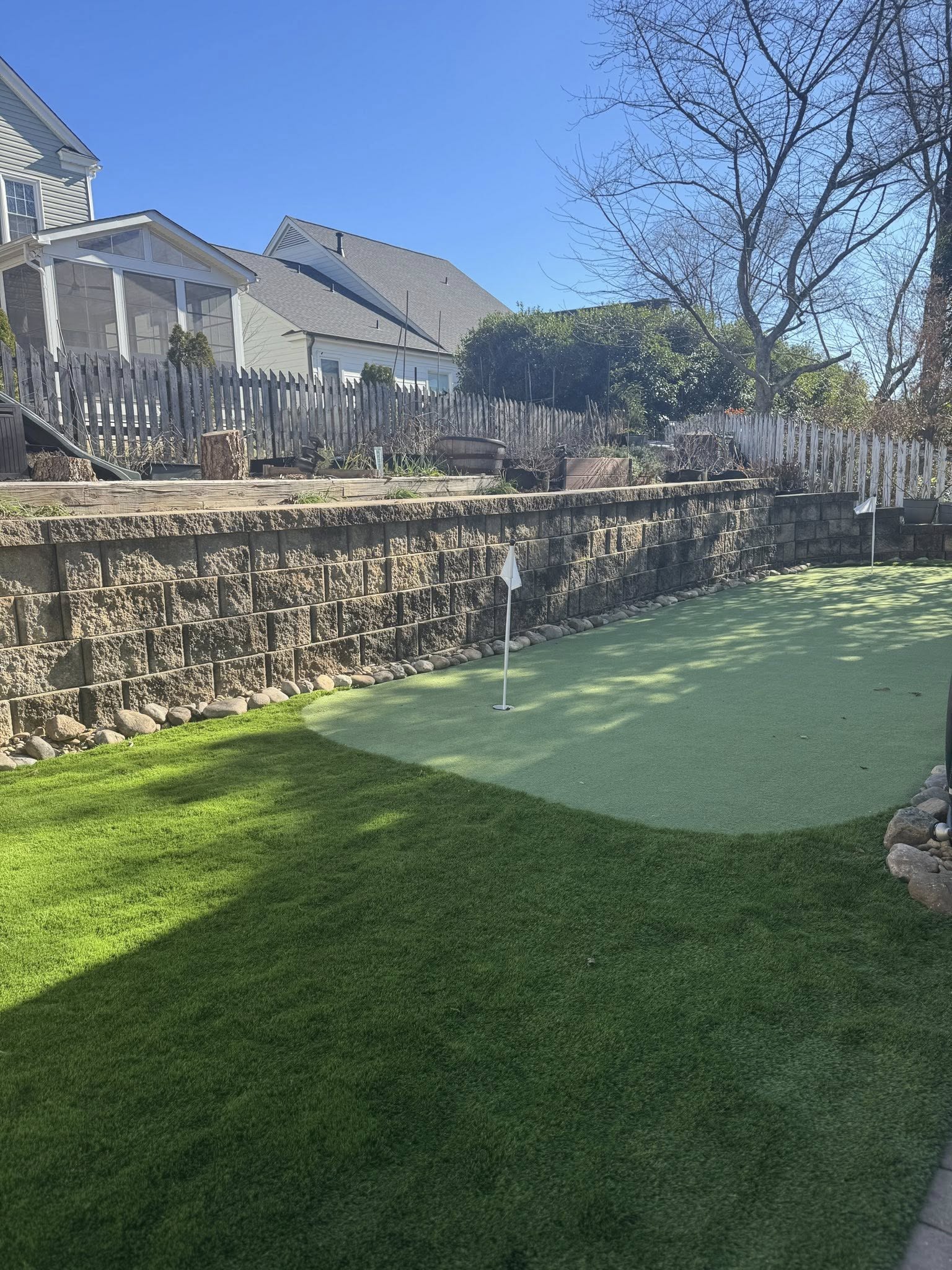 Beyond the recreational benefits, the practicality of this setup is unmatched. The artificial turf eliminates the need for mowing, watering, fertilizing, and aeration. In the heat of a Charlotte summer, while natural lawns turn brown or succumb to disease, the putting green remains vibrantly green and ready for play. The superior drainage system integrated into the base means the surface is playable almost immediately after a heavy rain, without the worry of mud or standing water. This combination of aesthetic perfection, low maintenance, and recreational utility increases the property’s value and usability. It is a sophisticated, fun, and smart investment that fulfills our promise of Making Homes More Beautiful®, ensuring your backyard is the envy of the neighborhood.