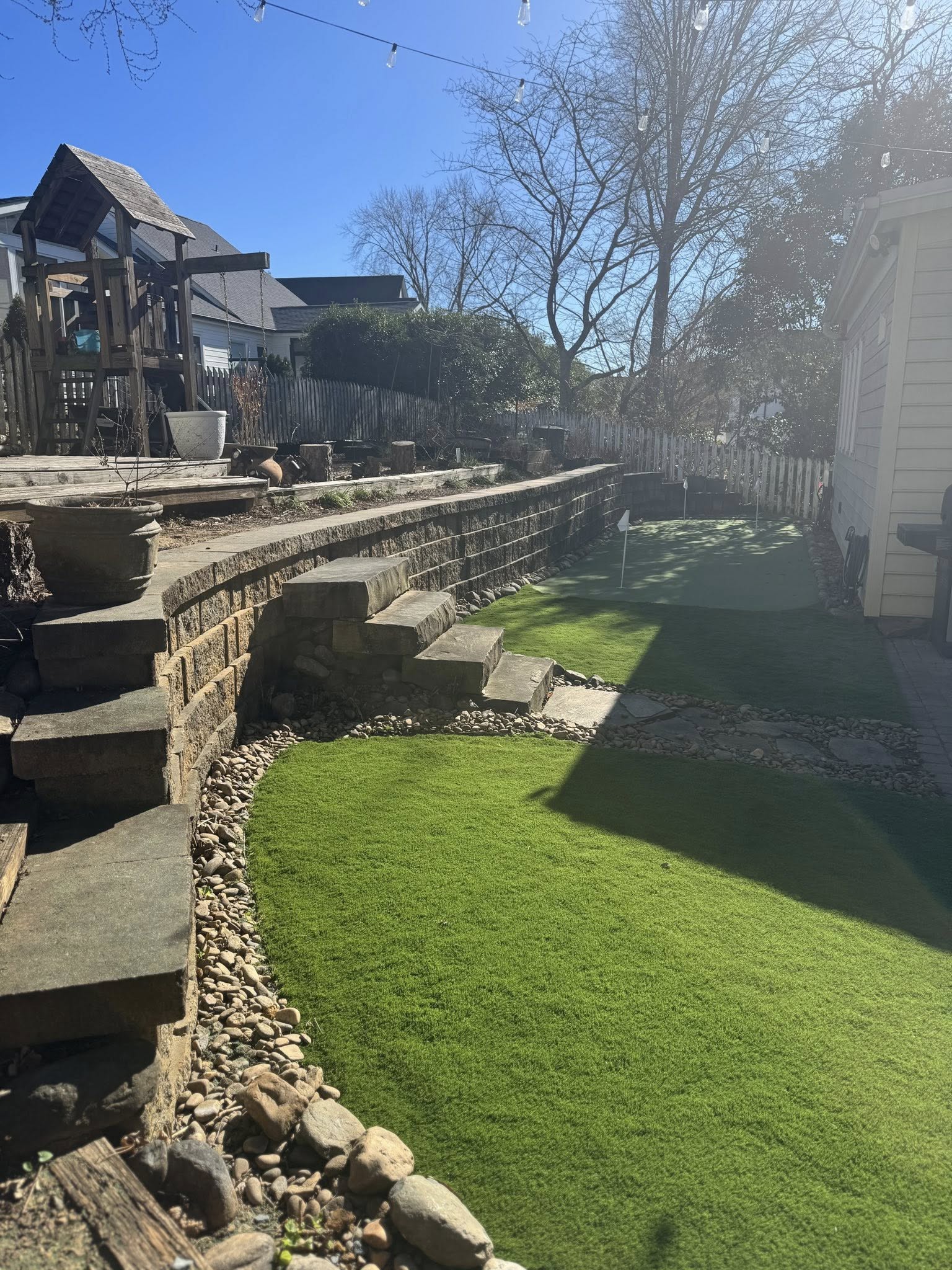 For the avid golfer or the active family, the concept of a “Staycation” has evolved from a simple weekend at home to creating a permanent resort-style environment just outside the back door. Installing an Artificial Turf and Putting Green on a backyard in Charlotte is an Outside Staycation of enjoyment. This type of installation transcends traditional landscaping; it turns a passive patch of grass into an interactive destination. Instead of loading up the car to drive to a crowded driving range or fighting for a Saturday morning tee time, homeowners can step onto their own private course with a cup of coffee in hand, enjoying the game they love in the privacy of their own sanctuary.