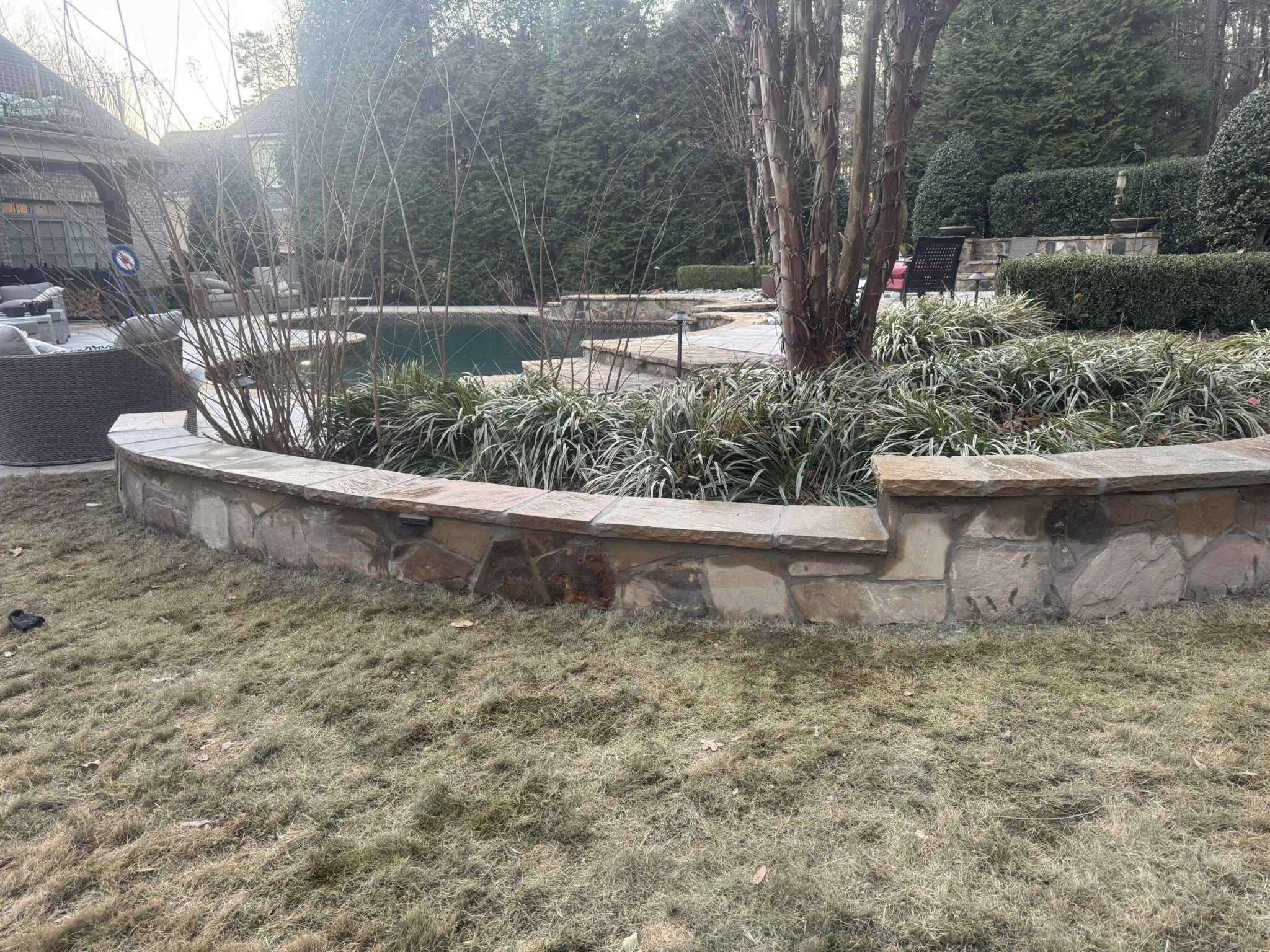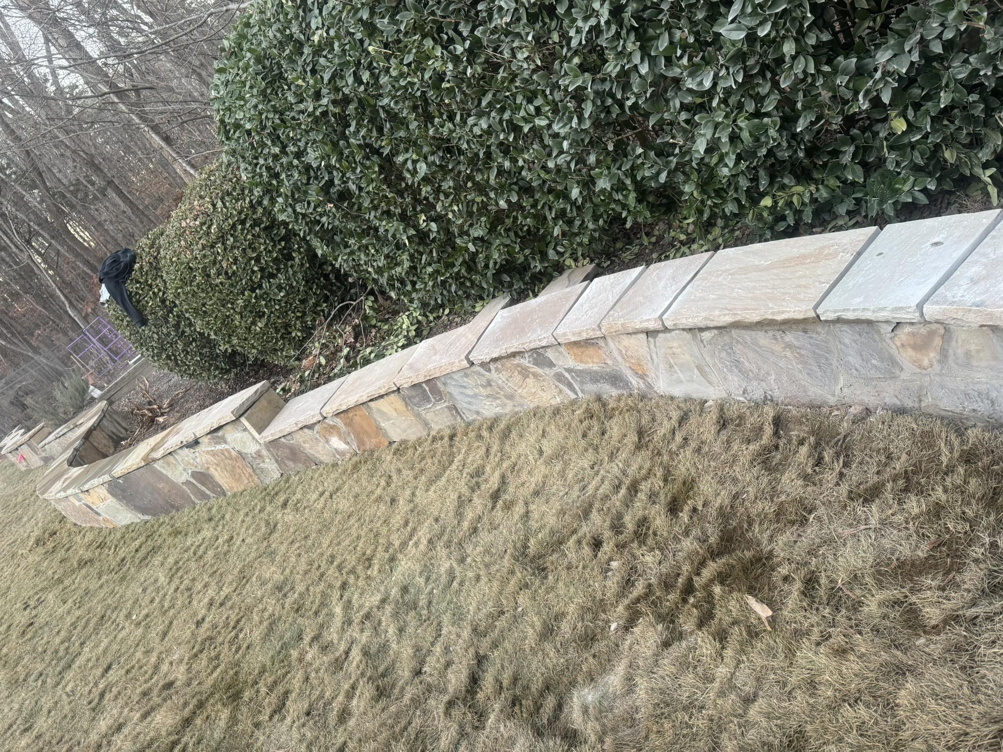 Functionally, this installation as a Natural Stone Wall is being used as a raised planting bed. This design choice elevates the horticulture, literally and figuratively. It brings colorful blooms and greenery closer to eye level, making them a focal point rather than a background element. Additionally, raised beds offer superior drainage and soil control, ensuring that the plants thrive. This combination of structural beauty and horticultural utility makes it an elegant exterior remodeling upgrade. It is a permanent investment that ages gracefully, developing a patina over the years that only enhances its charm. By prioritizing authentic materials and expert craftsmanship, this project stands as a prime example of our commitment to Making Homes More Beautiful®.