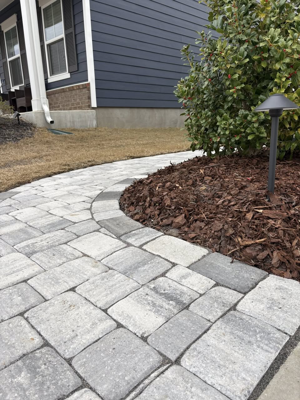 The practical benefits become most apparent when the weather turns. Plus, during inclement weather boots, sneakers or shoes get a lot less muddy with Paver Pathways. The Charlotte area is notorious for its heavy red clay, which becomes a sticky, staining mess after a rainstorm. Stepping off a paved surface onto wet turf is a recipe for tracking dirt into the house, ruining carpets and hardwood floors. By installing a hardscape walkway, you create a “clean zone” that keeps your family and guests above the mud. It functions as an outdoor mudroom, ensuring that the interior of your home remains pristine regardless of the season.