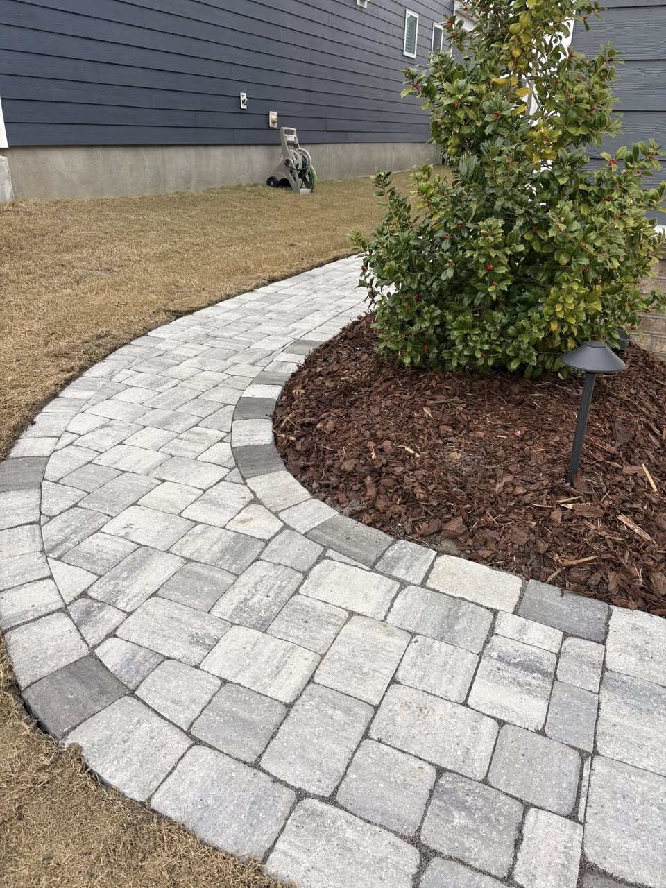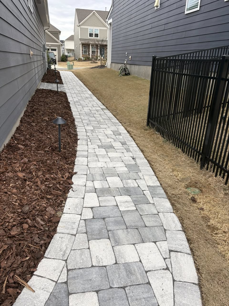 Having Paver Pathways around a home in Charlotte can be a great way to make life a little bit easier. In landscape design, how we move through a space is just as important as the destination itself. A well-planned walkway connects the driveway to the front door, or the back patio to a garden shed, providing a safe, level surface that guides foot traffic and defines the flow of the property. Without these defined routes, grass gets worn down into unsightly dirt trails, and flower beds are accidentally trampled. A paver pathway offers a structured, elegant solution that organizes the exterior and creates a cohesive look from the curb to the backyard.