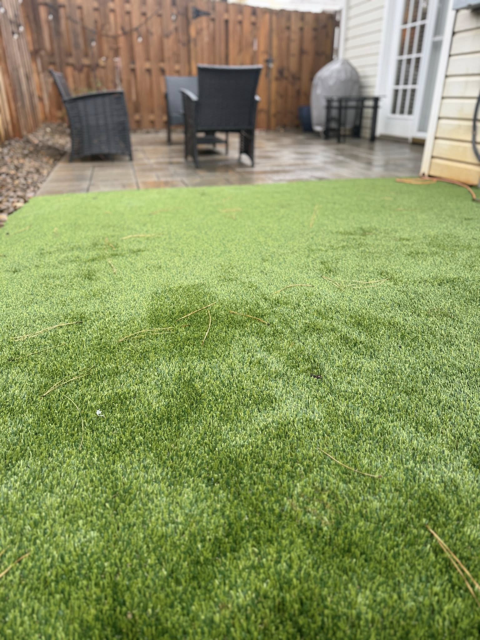 To complement the stone, quality Pet Friendly Artificial Turf was installed, replacing the struggle of keeping fescue grass alive in the humid shade. This isn’t the fake grass of the past; modern synthetic turf is lush, realistic, and designed specifically for households with pets. It features superior drainage capabilities, ensuring that pet waste can be easily rinsed away and that the yard remains mud-free even after a thunderstorm. No more mowing, fertilizing, or muddy paws tracking dirt into the house.