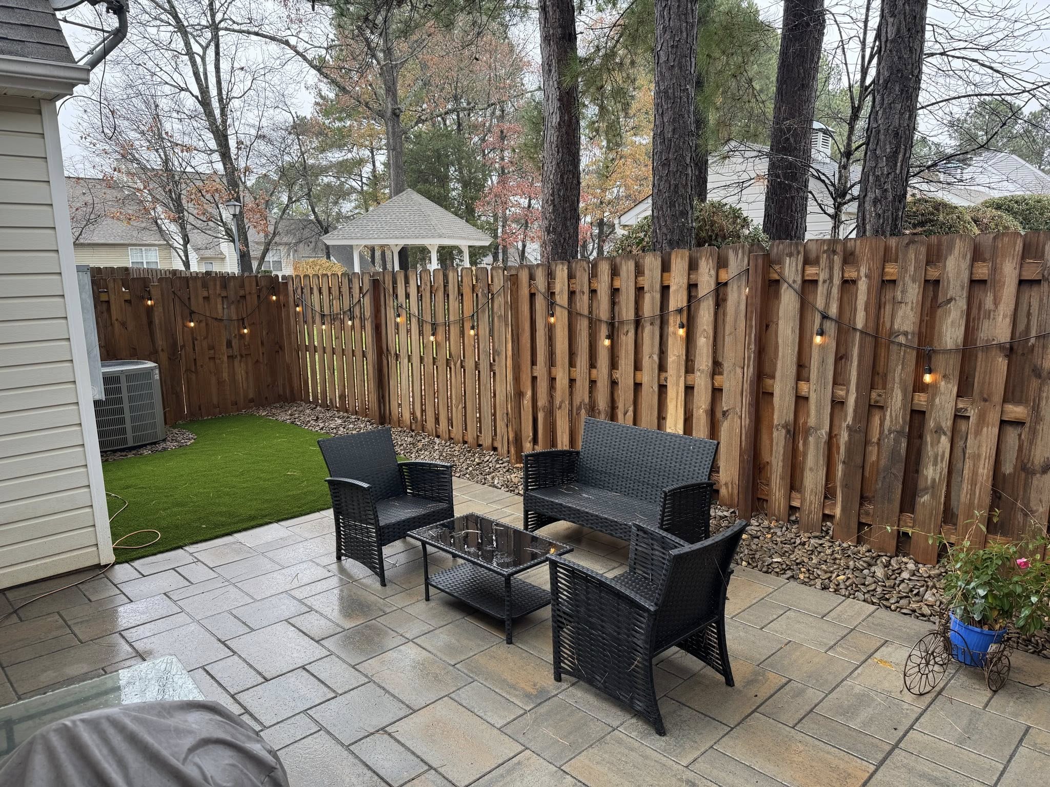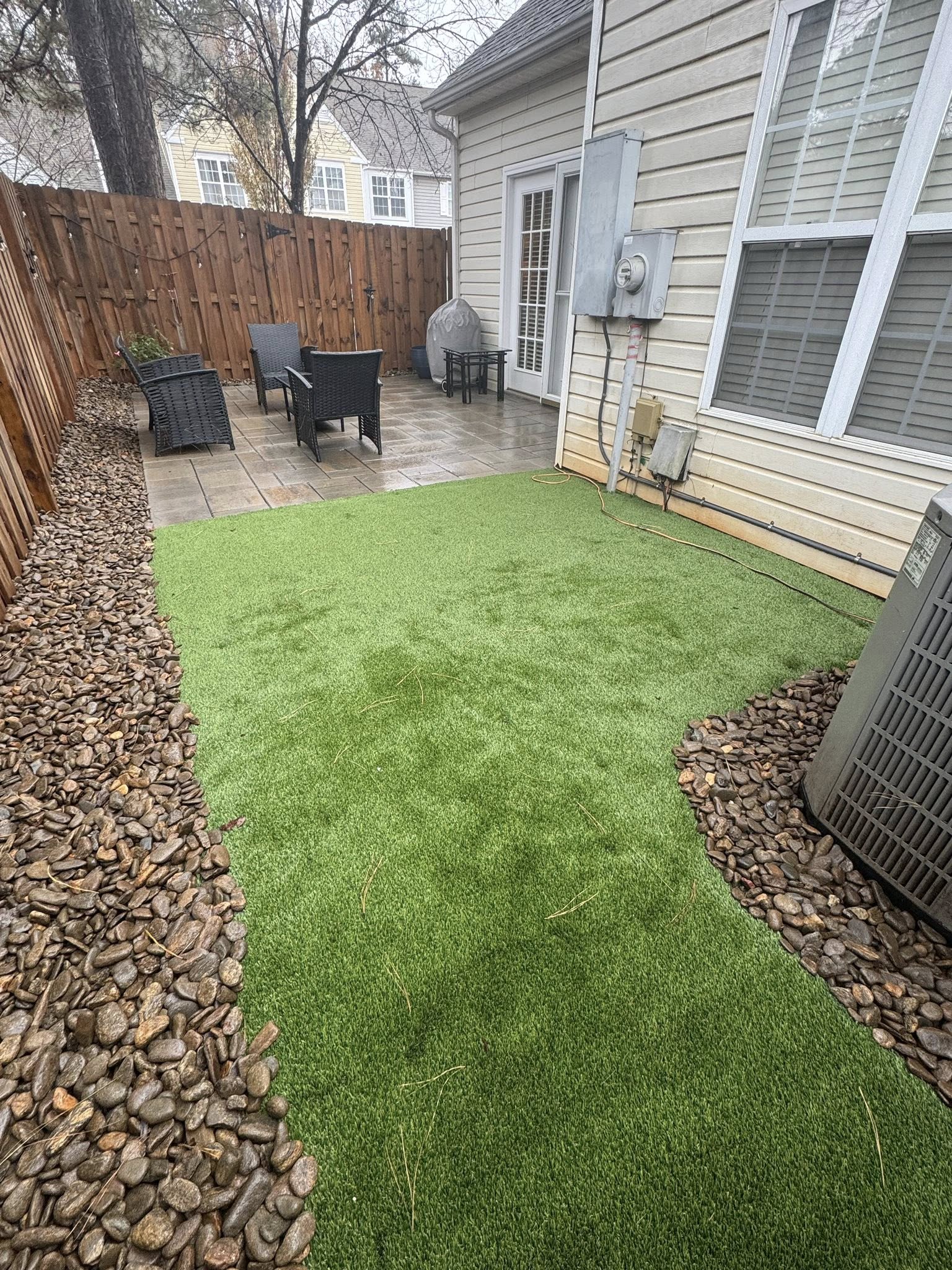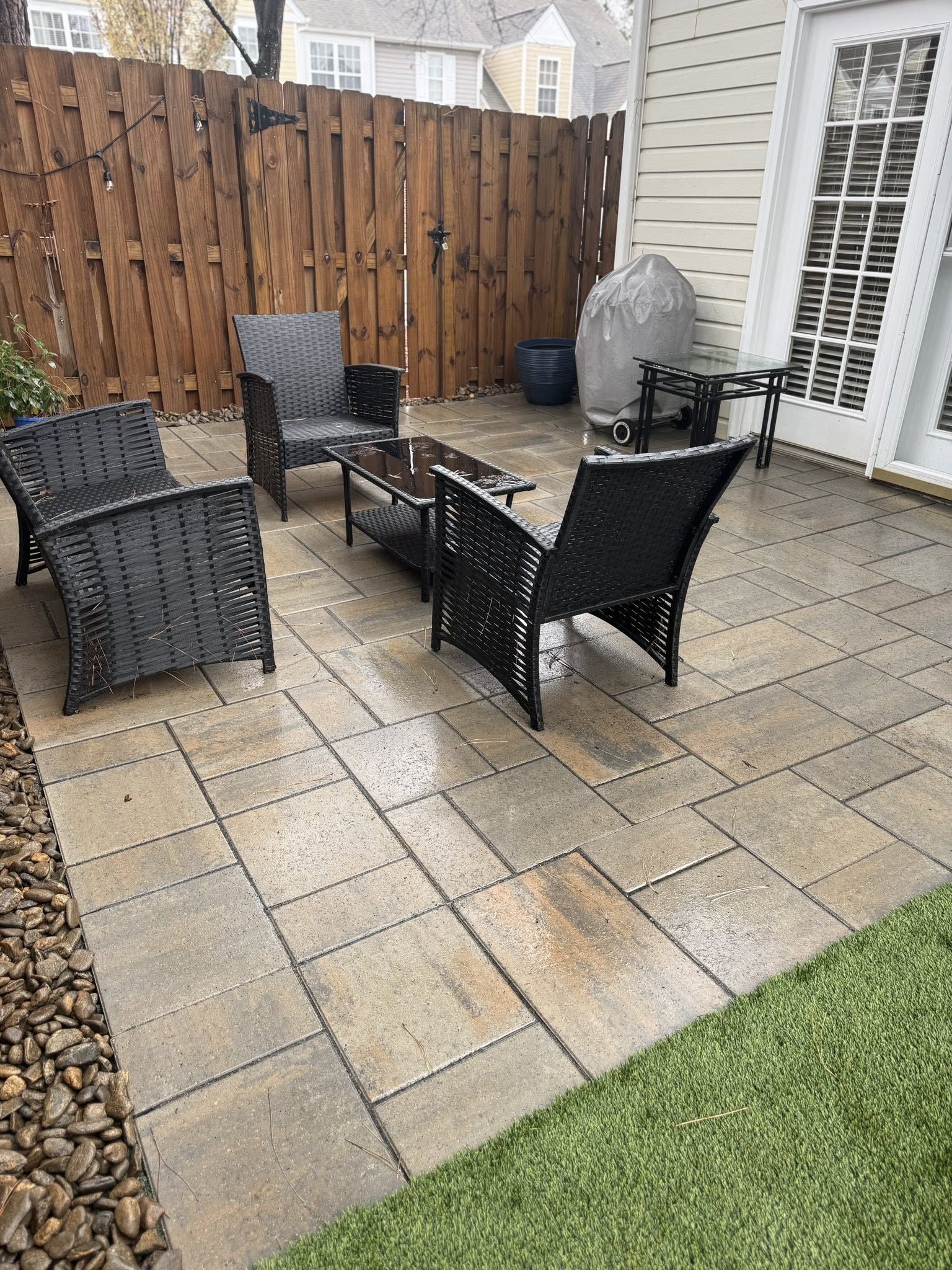 For modern homeowners in the Queen City, the ultimate luxury is time. Building a Maintenance Free Outdoor Living Space with a new Paver Patio, Artificial Turf and Drainage Solutions with River Rock as a Dry Creek Bed were the design and installation solutions for this fine backyard in Charlotte. This project was born from a desire to stop working in the yard and start living in it. By replacing high-maintenance organic elements with durable, high-quality alternatives, we created a sanctuary that looks pristine year-round with virtually zero effort.